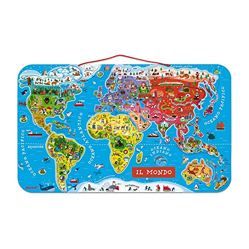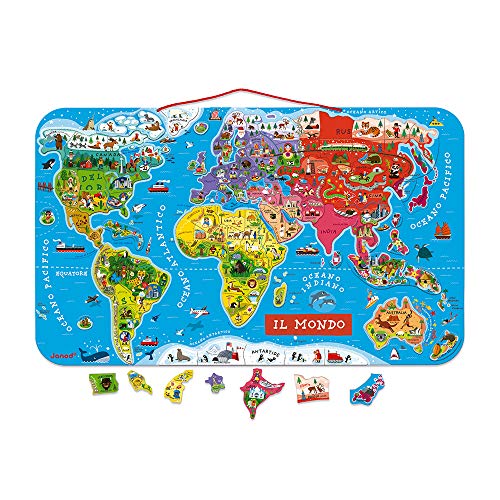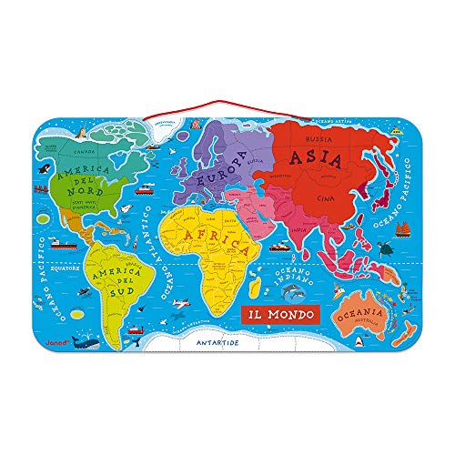 Janod Puzzle Magnetico Carta Del Mondo In Legno Planisfero Murale Con 92 Pezzi Calamitati Versione Italiana Gioco Didattico A Partire Da 7 Anni Single 70 X 43 Cm J05500 0