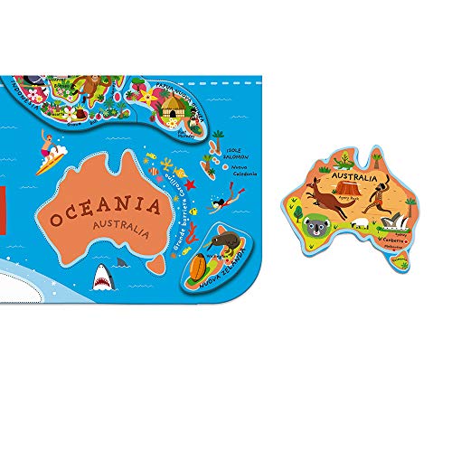 IMPARARE DIVERTENDOSI: parti per il giro del mondo in 92 calamite; divertiti a rimettere ogni paese al suo posto e otterrai un’ottima carta del mondo da appendere alla parete; un modo divertente e istruttivo per scoprire com’è fatto il pianeta e imparare i primi rudimenti di geografia; dimensioni: 70 x 43 cm; adatta a partire da 7 anni; gioco con testi in italiano