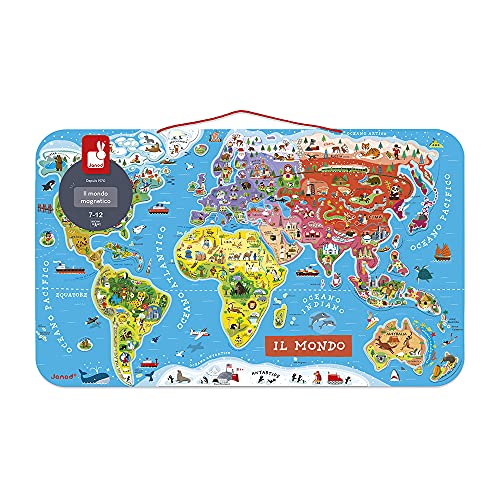 Janod - Puzzle Magnetico mappa del mondo in legno, 92 pezzi
