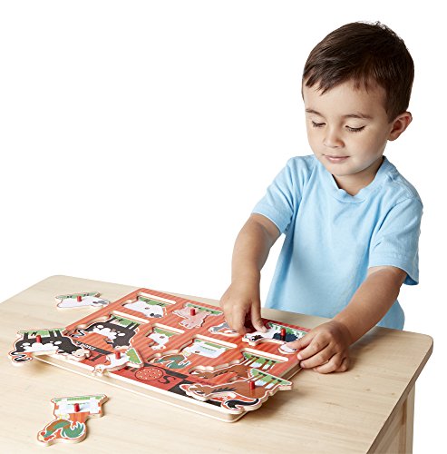 Ogni animale felice della fattoria “emette” la propria voce quando il pezzo corrispondente del puzzle viene collocato al posto giusto sulla tavola! Al vostro bambino piaceranno gli otto suoni e le illustrazioni a colori sotto ciascun pezzo di questo puzzle con pioli di legno formato da otto pezzi. Migliora le capacità di abbinamento e ascolto. ATTENZIONE: Questo articolo è consegnato dal fabbricante in un assortimento di colore/modello aleatorio. Per questa ragione Amazon.it non puo’ garantire la spedizione di un colore/modello in particolare. Ordinando questo articolo riceverete uno dei colori/modelli figuranti nell’immagine, in funzione dello stock disponibile. Amazon.it ringrazia per la comprensione. Il prodotto è sensibile alla luce Sollevare per esporre il sensore di luce, quindi sostituire (sensore di copertura) per sentire il suono “(SUGGERIMENTO: il puzzle ha sensori attivati dalla luce; per risultati migliori, esponi il sensore rimuovendo un pezzo in una stanza ben illuminata, quindi emetti il suono giocare sostituendo il pezzo nella scacchiera.)