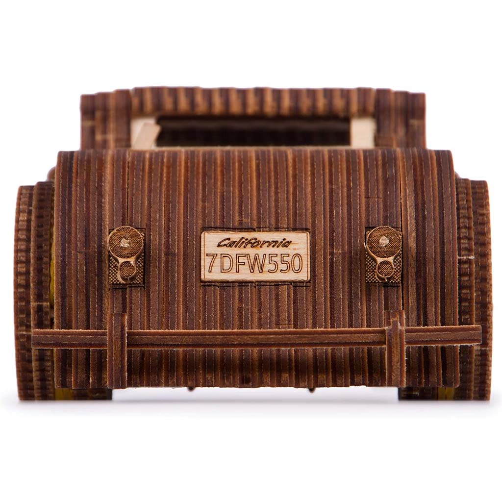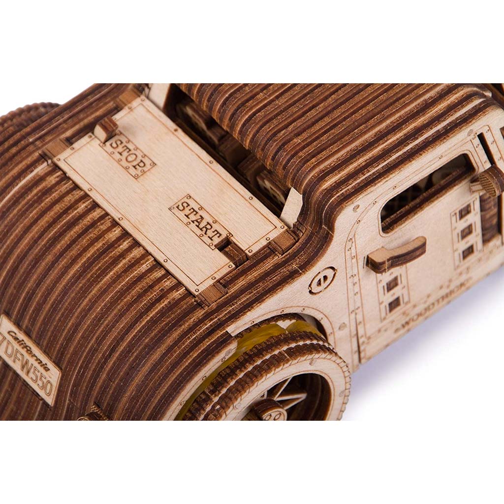 In questo modellino meccanico in legno, sono chiaramente evidenziati il ​​motore V8, una carrozzeria classica, ruote a raggi larghi e interni ben definiti. E’ davvero fantastica!