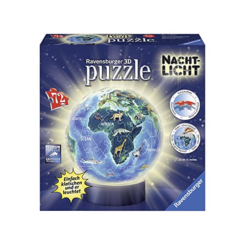 La terra colorata per bambini diventa una straordinaria luce notturna con un battito a mano, quando la base luminosa fa brillare la palla dall’interno. Grazie alla nostra tecnologia Easyclick tutti i pezzi del puzzle in plastica si incastrano perfettamente tra loro e formano una palla stabile, senza colla. La numerazione delle parti facilita il pre-ordinamento e consente di creare facilmente puzzle in base ai numeri. Suggerimento: con la base luminosa in dotazione si possono trasformare molti altri motivi in una fantastica luce notturna.