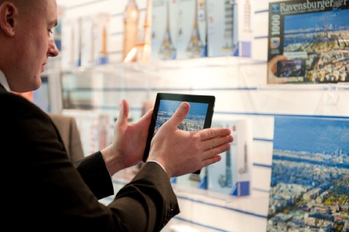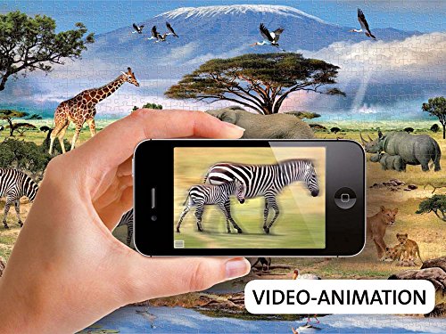 Dimensione finale del puzzle: 70 x 50 cm. La Augmented Reality (realtà aumentata) vi regala una “realtà nella realtà” completamente nuova, creando impressioni visive uniche grazie alle più moderne tecnologie informatiche. Tutto quello di cui avete bisogno è un puzzle Ravensburger scelto dalla serie “Augmented reality”, la funzione fotocamera del vostro iPhone® o iPad®2 e questa applicazione gratuita. In questo modo scoprirete cose che prima non riuscivate a vedere! Date un’occhiata al meraviglioso mondo dietro alle “quinte del puzzle” e fatevi rapire dalla profondità dei motivi, in modo interattivo, acustico o attraverso animazioni. Ma sempre in modo interessante, informativo e sorprendente! Componete il vostro puzzle, scaricate l’applicazione gratuita, sovrapponete il vostro iPhone® oppure iPad®2 al puzzle ultimato e fatevi stupire! Preparatevi ad un viaggio d’esplorazione e regalatevi momenti indimenticabili! Ed ecco come funziona: 1. Completate il vostro puzzle come sempre. 2. Scaricate l’applicazione gratuita dall’AppStoreSM e installatela direttamente sul vostro iPhone® 3GS, iPhone® 4, iPhone® 4S o iPad 2®. 3. Illuminate in modo uniforme l’intero puzzle, evitando ombre, coni luminosi, incidenze di luce ecc. sulla superficie illustrata. 4. Con l’applicazione aperta, orientate la fotocamera verso il puzzle dalla distanza consigliata. 5. Preparatevi ad un viaggio d’esplorazione e regalatevi momenti indimenticabili! QUANTO COSTA L’APP? L’applicazione è gratuita, si può scaricare direttamente dall’App Store. NEL PRODOTTO SI TROVANO VOUCHER O BUONI PER L’APPLICAZIONE ? No, non è necessario un buono. L’applicazione può essere scaricata gratuitamente (andando sulla funzione “AR Puzzles”) direttamente sull’App Store. L’applicazione da sola non serve a niente: funziona soltanto in combinazione con il puzzle. Ci vuole ogni volta il contatto con l’immagine per far scattare il filmino, l’effetto speciale ecc. IL TRACKING (LA RIPRODUZIONE) FUNZIONA UGUALMENTE SE IL PUZZLE NON È ANCORA COMPOSTO COMPLETAMENTE ? Dipende proprio da quale parte è già stata composta. Ovviamente non basta fare solo il bordo… Può in effetti funzionare, se è stata composta buona parte con elementi rilevanti: per esempio la Tour Eiffel nel puzzle di Parigi, ma è sempre meglio provare. Rimane la raccomandazione di terminare prima il puzzle per poi vedere gli effetti speciali, come ovviamente farà il nostro consumatore. Siete pronti per la vostra personale avventura di “Realtà aumentata”? Allora scegliete fra le prossime informazioni dettagliate quelle adatte al vostro puzzle. Si parte! Gli animali dell’Africa (19305-9) Scoprite da vicino l’affascinante fauna africana. Con la “Realtà Aumentata” potete farlo letteralmente in movimento! Con la vostra fotocamera, inquadrate l’animale che desiderate animare e iniziate il vostro personalissimo e vivido safari con zebre, giraffe, elefanti, rinoceronti o leoni. ANIMALI DELLA SAVANA 19305 [amz_corss_sell asin=”B007ADICI2″]
