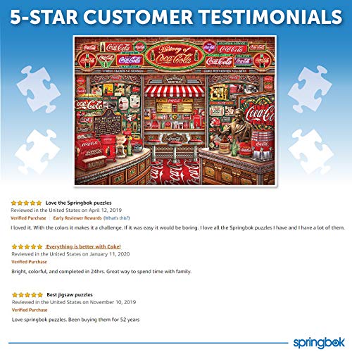 Torna indietro nel tempo e rinfrescarti con un po’ di Nostalgia, con questo puzzle Coca-Cola di Springbok. Tutti, sia giovani che vecchi, si divertiranno a scegliere tutti i diversi oggetti sparsi in questa tavola ristorante retrò. Puzzle da 1000 pezzi con una dimensione finita di 76,2 x 61 cm. I nostri pezzi unici con taglio di precisione garantiscono sempre un puzzle stretto e ad incastro. Springbok Puzzle sono stati prodotti americani dal 1963 ed è uno dei più antichi e rispettati marchi di puzzle puzzle. Utilizzando materiali riciclati per puzzle board e inchiostri atossici di provenienza sostenibile. Siamo orgogliosi della qualità superiore dei nostri puzzle, tutti i puzzle sono coperti con la nostra garanzia di soddisfazione del cliente. Puzzle da 1000 pezzi – con una dimensione finita di 76,2 x 61 cm con un taglio di precisione che garantisce un puzzle stretto e ad incastro di qualità cimelio Prodotto negli Stati Uniti: prodotto a Kansas City, Missouri; i puzzle Springbok sono prodotti in America dal 1963 Ecologico: i puzzle Springbok sono realizzati con inchiostri biologici e atossici a base di soia di provenienza sostenibile e utilizzano materiali riciclati al 100% Pezzi di taglio unico: ogni pezzo del puzzle è unico e mai ripetuto; i pezzi Springbok sono realizzati in cartoncino spesso a 75 punti, 18% più spessi rispetto alla media del settore Tutti i prodotti Springbok Puzzle sono coperti con la nostra garanzia di soddisfazione su materiali e artigianato [amz_corss_sell asin=”B07MQT5F8Z”]